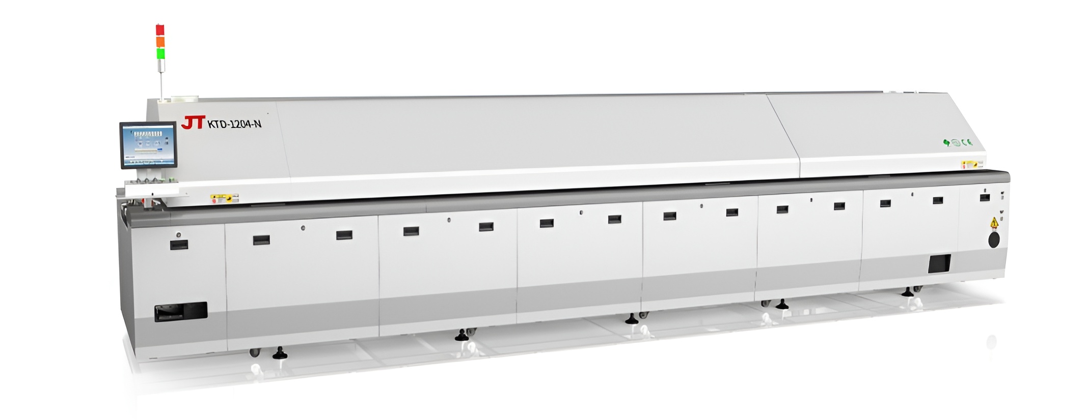 勁拓KT系列高端回流焊爐 ● 高產能低能耗,全新熱工學管理系統(tǒng),有效降低成本 ● 專業(yè)應對高速生產及高精密度PCB封裝工藝 ● 控溫能力強,高控溫精度 ● 超強快速升降溫能力 ● 全程氮氣定量可控,各溫區(qū)獨立閉環(huán)控制 ● 最新冷卻技術,可選多區(qū)雙面冷卻 ● 新型二段式助焊劑回收系統(tǒng) ● 雙軌雙速,單機成本,雙倍產能,節(jié)能65%。